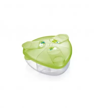 Le distributeur de lait en poudre est particulièrement léger et peut contenir jusqu’à 3 doses de lait en poudre, Grâce à sa forme triangulaire innovante, le lait en poudre est introduit dans le biberon sans laisser de résidus, Idéal pour des parents actifs et idéal pour les sorties.