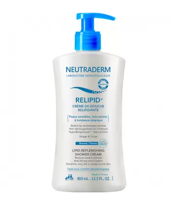 La crème de douche Relipid+ du laboratoire Neutraderm est un soin du visage et du corps spécifiquement dédié aux peaux sensibles et très sèches, susceptibles d’être particulièrement sujettes à des réactions allergiques. Cette tendance atopique est liée à différents facteurs, dont le plus fréquent reste l’hérédité. Néanmoins, la pollution de l’air, des changements hormonaux, voire l’utilisation de produits d’hygiène corporelle non adaptés, peuvent également amplifier le phénomène allergique de la peau.